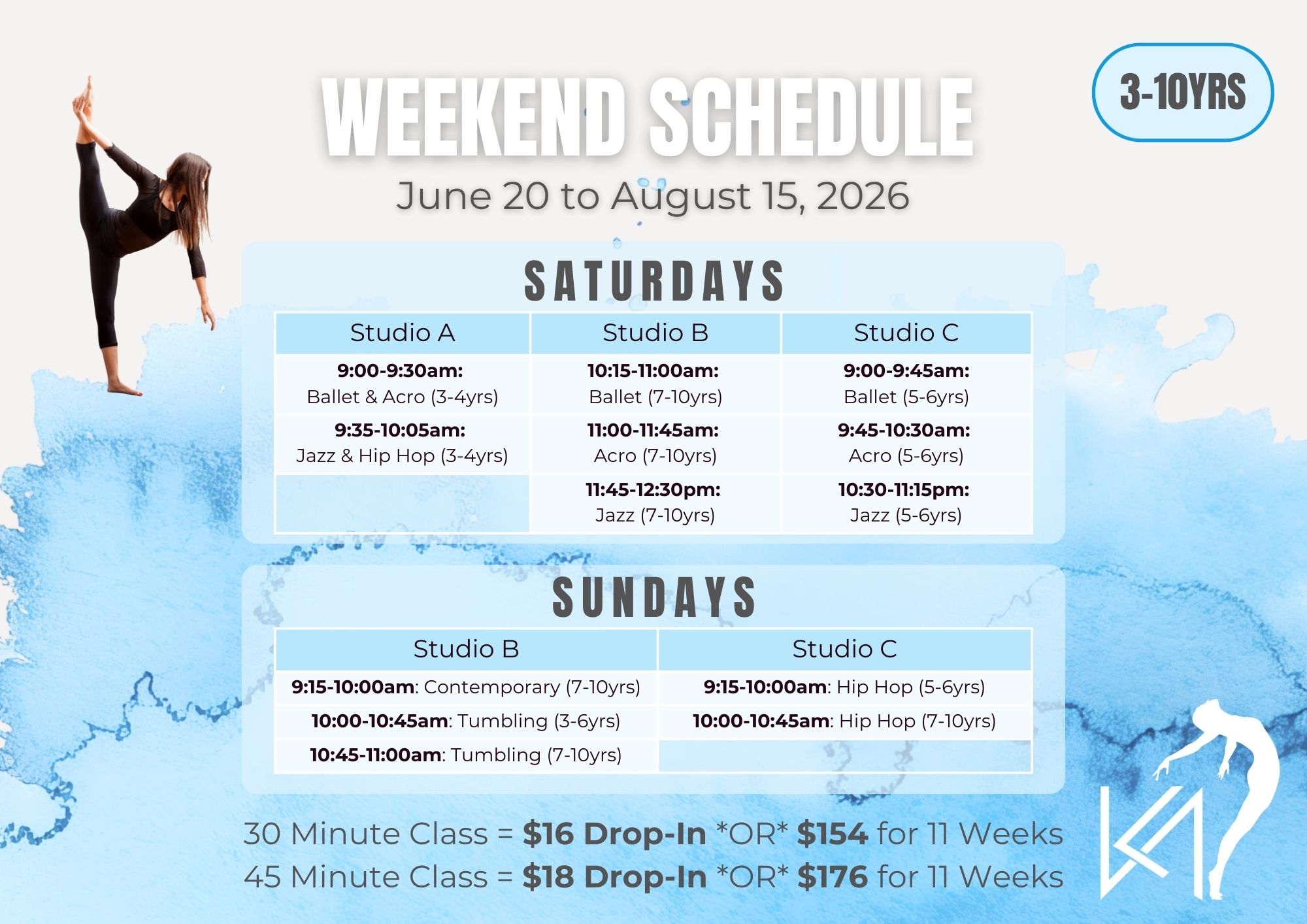 Our Summer Classes for Ages 3-10 run Saturday and Sunday mornings.